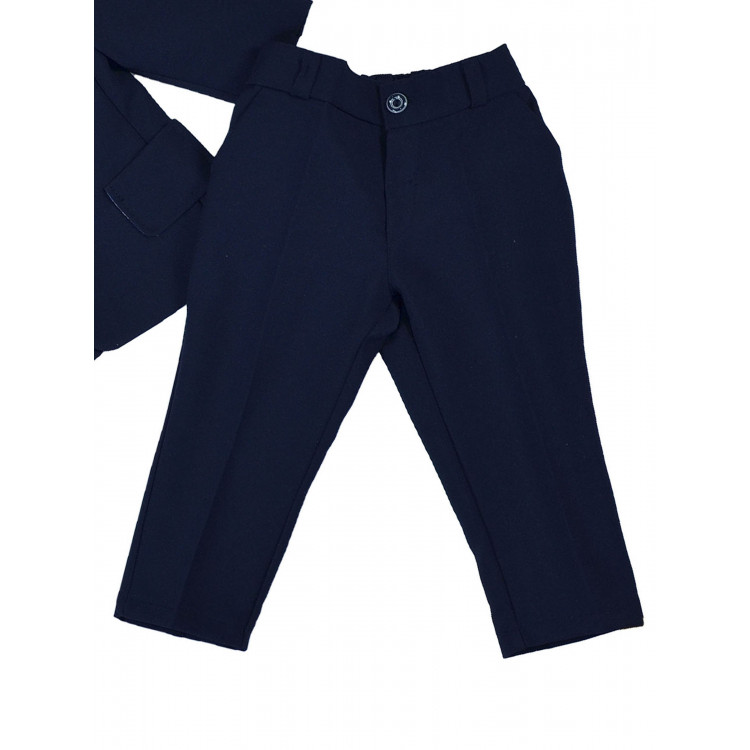 - пиджак темно-синего цвета с длинными рукавами. Пиджак имеет два кармана клапана по бокам. Застегивается на 2 пуговицы; на груди карман с декоративным красным платочком.